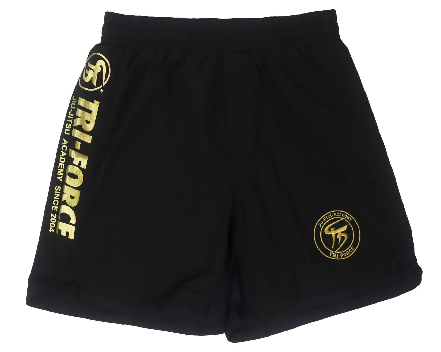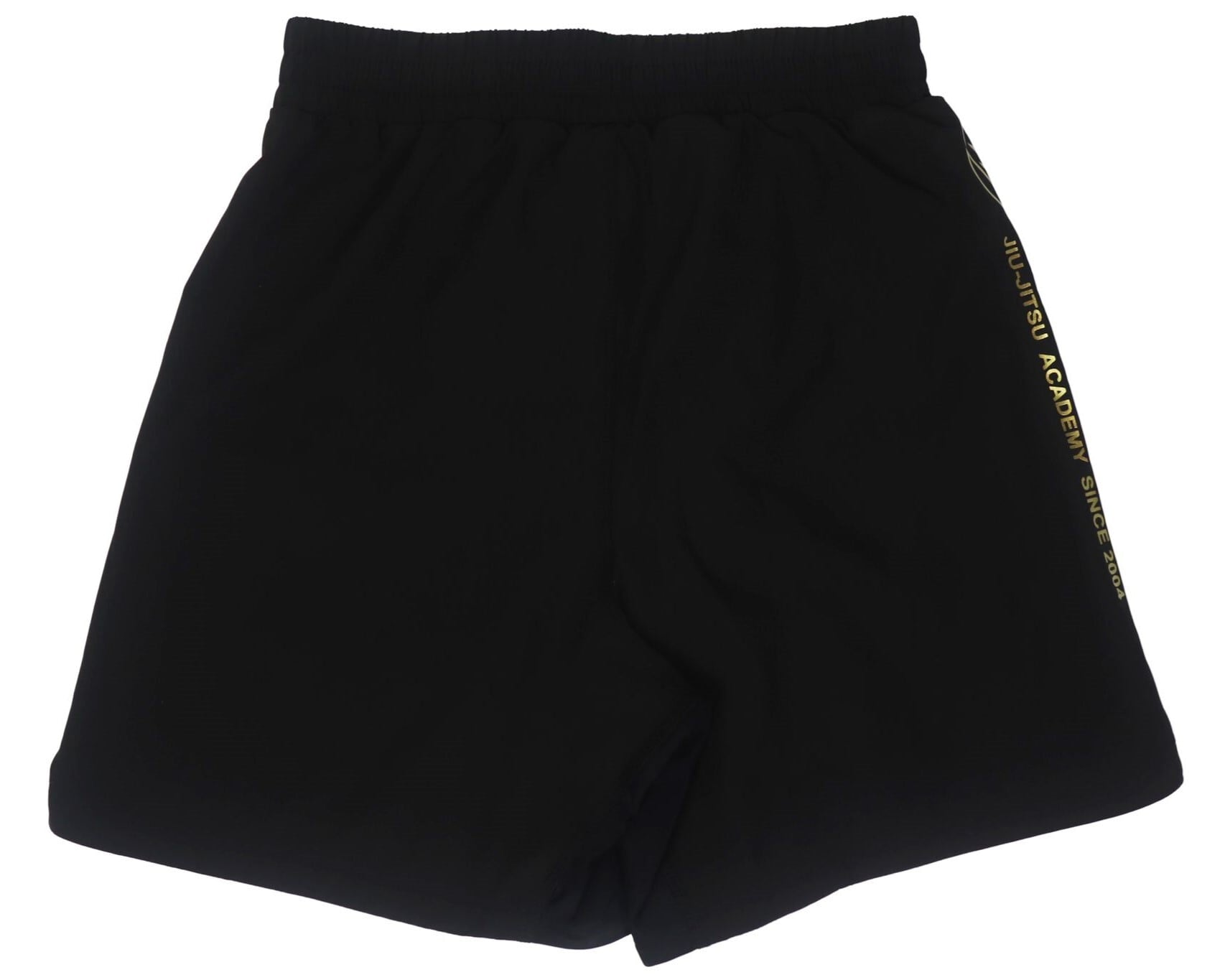 インナースパッツ一体型のファイトショーツです。伸縮性のあるスパンデックス生地を採用し動きやすさを実現しています。ヒザに掛からないショート丈で、グラップリング、MMA、キックボクシング用のウェアとして最適です。ウェスト部はバンド仕様で調節用の紐つき。スパッツ部分にはマウスガードポケットを搭載。フロントには刺繍ロゴを、サイドにはリフレクトプリント加工のロゴをデザインしています。